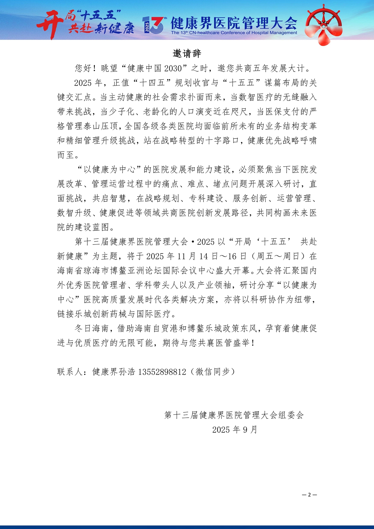 十三届健康医院管理大会邀请函